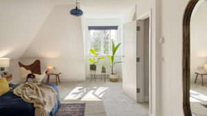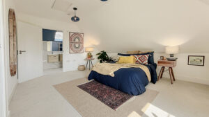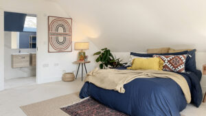 Occupying the entire top floor, the principal suite offers a calm and private retreat, complete with a spacious en-suite featuring a walk-in shower, double basins and a separate bath