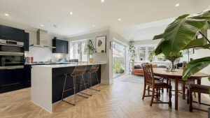 - Large open-plan kitchen/living/dining space with bifold doors to garden