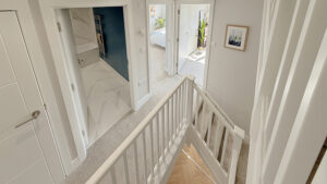 The first floor comprises three well-proportioned double bedrooms, including one with an en-suite, alongside a modern family bathroom with bath and overhead shower.